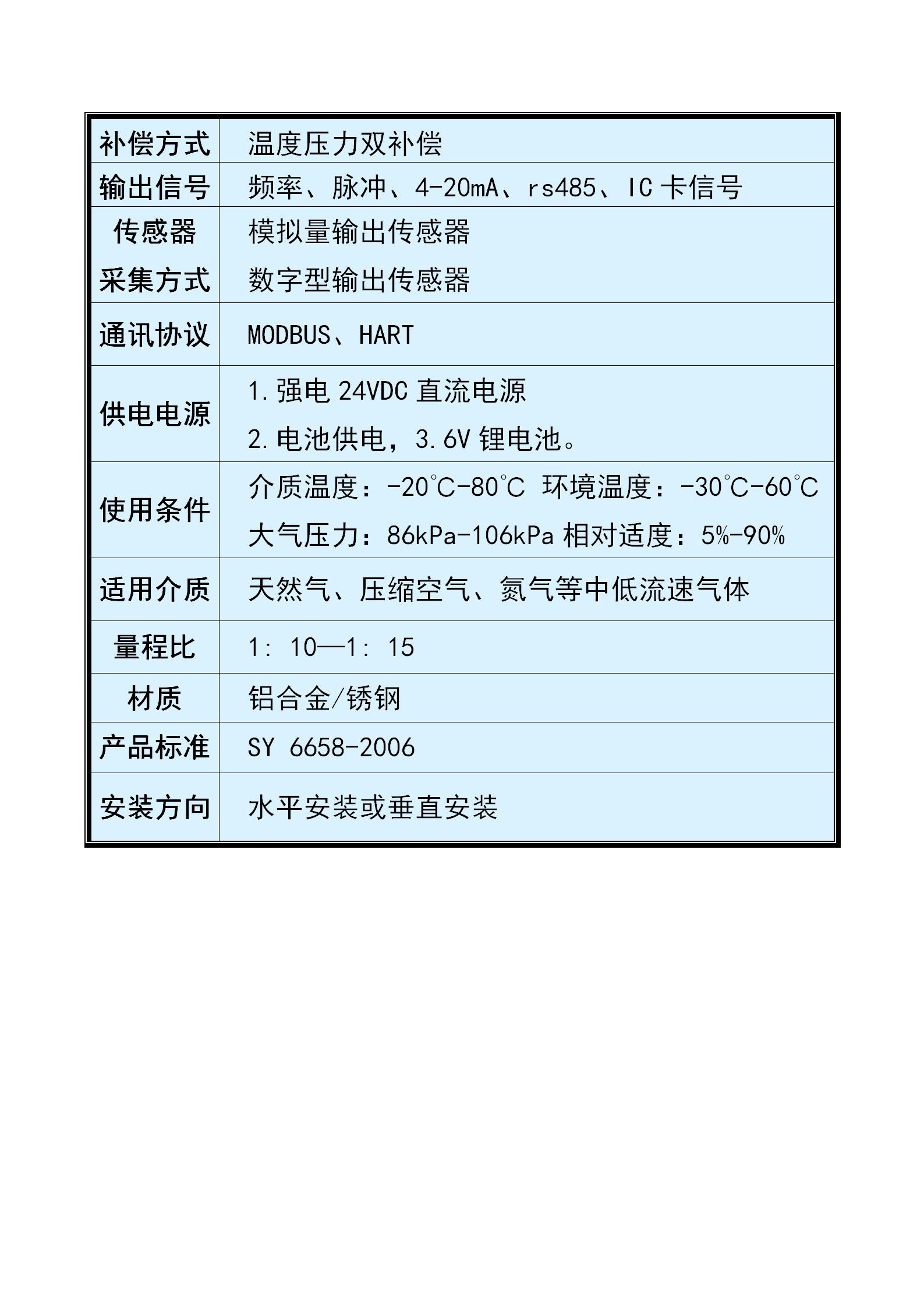 ◆采用漢字點陣顯示屏,顯示位數(shù)多,讀數(shù)直觀方便,可直接顯示工作狀態(tài)下的體積流量、標準狀態(tài)下的體 積流量、總量,以及介質(zhì)壓力、溫度等參數(shù);