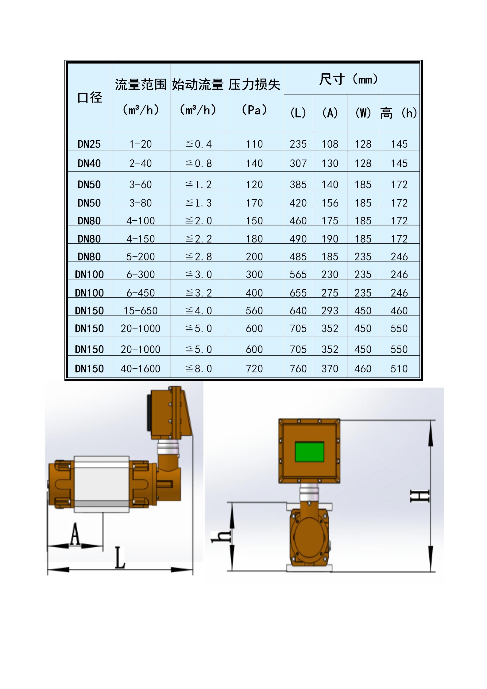 2、始動流量低,測量范圍度很寬;不同規(guī)格流量計(jì)的測量范圍度可達(dá)40:1~200:1。