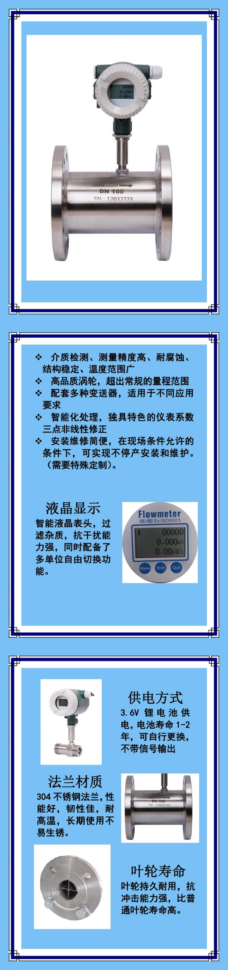 DY系列渦輪流量計是吸取了國內外流量儀表先進技術優(yōu)化設計、具有結構簡單、輕巧、精度高、重復性好、反應靈敏、安裝維護使用方便等特點的新一代渦輪流量計,可廣泛用于石油、化工、冶金、供水、造紙等行業(yè),如用戶需用特殊形式的傳感器,可協(xié)商訂貨。