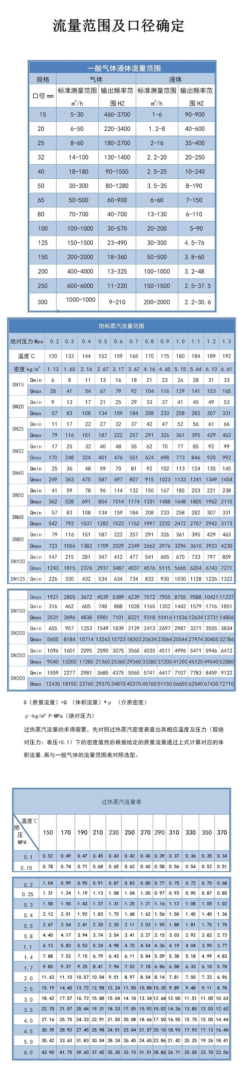 渦街流量計(jì)選型表